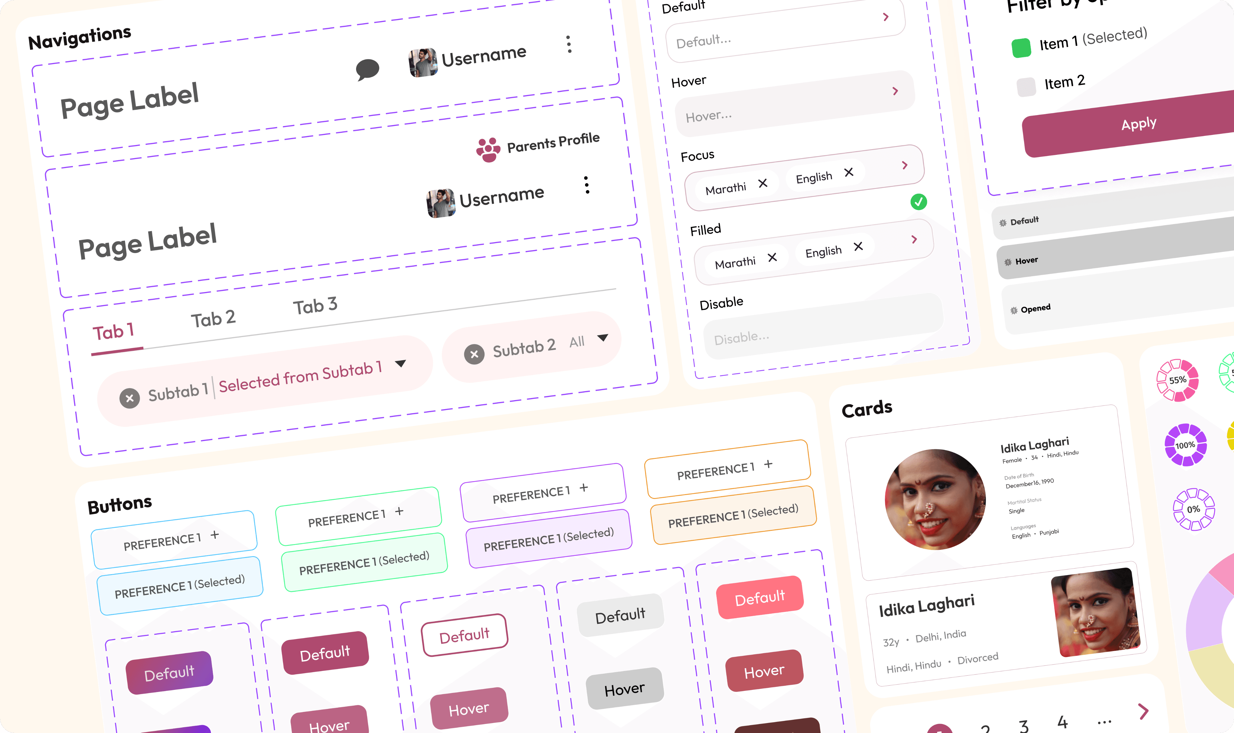 Participatory user research - Ideation - Strategy - Key flows design - Interaction Design - Rapid prototyping - Usability Testing